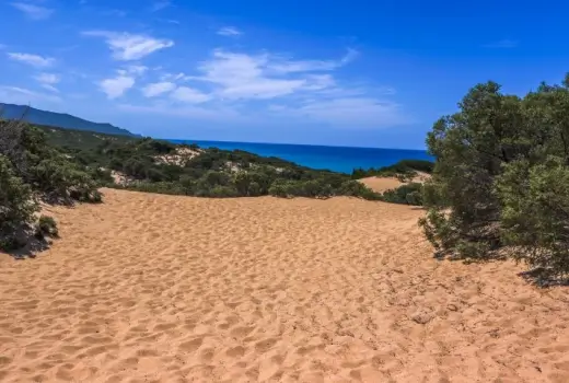 Ein kurzer Transfer bringt dich am Morgen nach Ingurtosu, einem halb verlassenen Dorf mit spannender Bergbaugeschichte. Hier startet deine Wanderung zu den Ruinen der alten Mine Laveria Brassey. Dann beginnt das Abenteuer: Du tauchst ein in die Dünen von Piscinas, Europas größtes Wüstengebiet! Sechs Kilometer lang bist du umgeben von nichts als Sand, Wind und dem Rauschen des Meeres - ein Gefühl wie auf einer Expedition. Am Abend wartet eine gemütliche Unterkunft auf einem Bauernhof, wo du die nächsten zwei Nächte verbringst.
