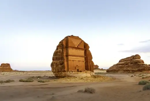 Mit dem Geländewagen durch die Wüste rund um Al-Ula. Goldene Dünen und vom Wind bizarr geformte Berge begleiten Ihre Fahrt. Das Highlight dieses Tages: Hegra, die erste UNESCO-Welterbestätte Saudi-Arabiens. Das "zweite Petra" – noch ohne Touristenansturm – war jahrhundertelang unter dem Wüstensand verborgen, bis es Forscher 1876 entdeckten. Während der Rawi die Geschichte mit seinen Geschichten zum Leben erweckt, erkunden Sie die in den Sandstein gehauenen monumentalen Gräber. Den Sonnenuntergang erleben Sie mit bestem Panoramablick auf die gewaltige Silhouette des "versteinerten Elefanten".