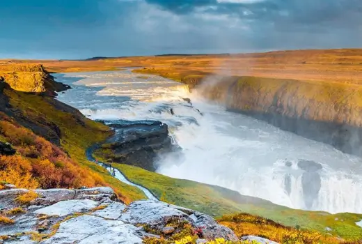 Der Tag beginnt mit einer kleinen Rundfahrt durch Reykjavik, auf der Sie unter anderem die hoch aufragende Hallgrimskirche und das futuristische Opernhaus Harpa bewundern. Dann startet Ihr Ausflug ins bergige Landesinnere, in den Nationalpark Thingvellir, der zum UNESCO-Welterbe zählt. Im Jahr 930 (!) versammelten sich hier Abgesandte aus ganz Island und eröffneten das erste Parlament weltweit. Noch ein Blick in die riesige Erdspalte, wo die amerikanische und die eurasische Kontinentalplatte Zentimeter um Zentimeter auseinanderdriften, und schon erwartet Sie landeinwärts ein doppeltes Naturspektakel: Der gewaltige goldene Wasserfall Gullfoss stürzt über mehrere Stufen in eine Schlucht, über der oft ein Regenbogen steht. Gleich nebenan befindet sich nicht nur der Namensgeber aller Geysire, sondern auch sein kleiner aktiver Bruder Strokkur, der im 10-Minuten-Takt bis zu 35 m hohe Wasserfontänen in den Himmel schießt. Am Nachmittag sind Sie zurück in Reykjavik